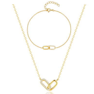 Ensemble assorti bracelet et collier en argent sterling 925 orné de zircons avec placage or 18K.